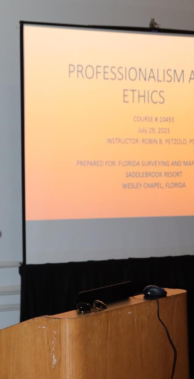 President-Elect Richard Pryce (954) 739-6400 rdpryce@gmail.com Vice President Allen Nobles (561) 687-2220 allen.nobles@sam.biz Secretary Sam Hall (352) 408-6033 surveysam17@outlook.com Treasurer Bon Dewitt (352) 392-6010 bon@ufl.edu Immediate Past President Lou Campanile, Jr. (954) 980-8888 lou@campanile.net 2023-24 FSMS Officers The Florida Surveyor Page 3