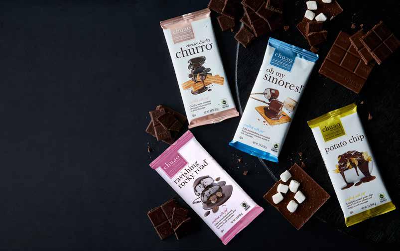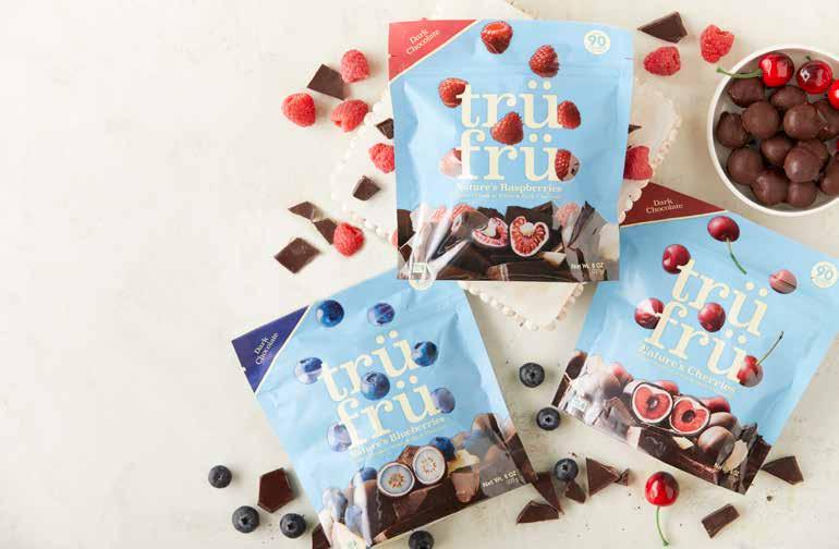 Fruits like blueberries, cherries, raspberries and bananas are frozen at peak freshness, immersed in white and dark or milk chocolate, and hyper-chilled to lock in flavor and nutrition.
