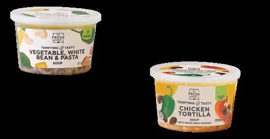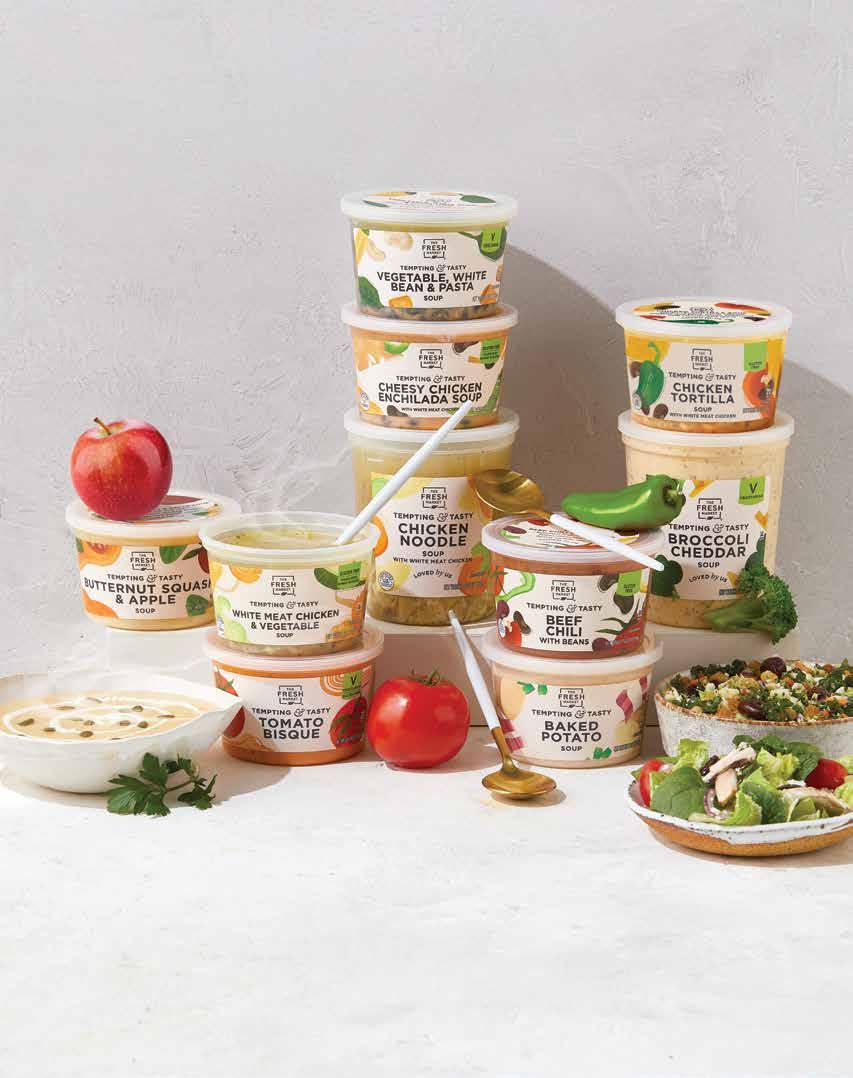 why we love it: Cold days and nights call for steamy heaping bowls of soup. Try our vegetarian options: Vegetable, White Bean & Pasta and Tomato Bisque. We also have four gluten-free options: Tomato Bisque; Cheesy Chicken Enchilada; Chicken Tortilla, White Meat Chicken & Vegetable; and Beef Chili. $6.99-$12.99 ea | 16-32 fl oz