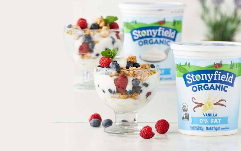 Stonyfield has been making greattasting yogurt since 1983 and is one of the leading organic yogurt makers in the country. They use 100% organic milk from pastureraised cows to create a creamy and wholesome snack that can also be used in dressings, desserts, baked goods, creamy soups and more.