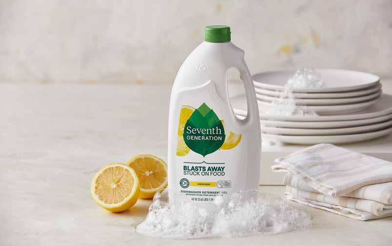 Seventh Generation Dishwasher Gel Lemon Driven by the promise to consider their impact on the next seven generations, Seventh Generation founders are committed to providing effective, safe, bio-based products that are good for the planet and for your family. The dishwasher gel formula uses plant-based enzymes designed to tackle extra greasy food stains without artificial fragrances or chlorine bleach.