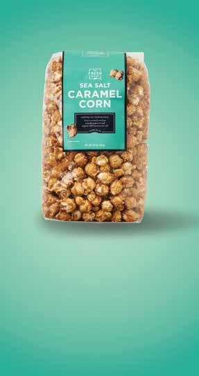 Sweet caramel hugs crunchy popcorn, with a dash of sea salt for your snacking pleasure. Make it more savory with mixed nuts or pretzels. It’s a great addition to movie nights or game day spreads.