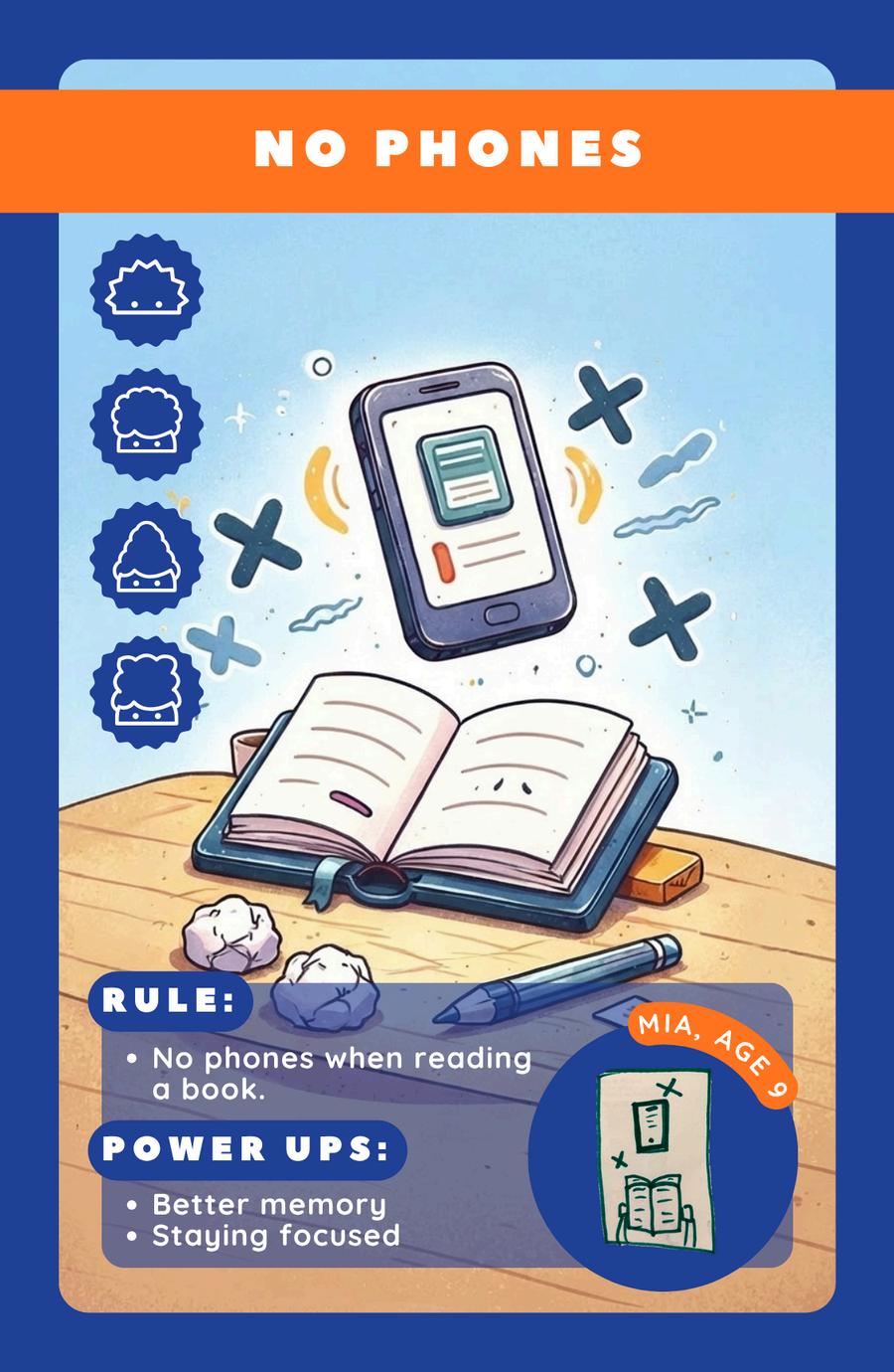 No phones when reading a book.