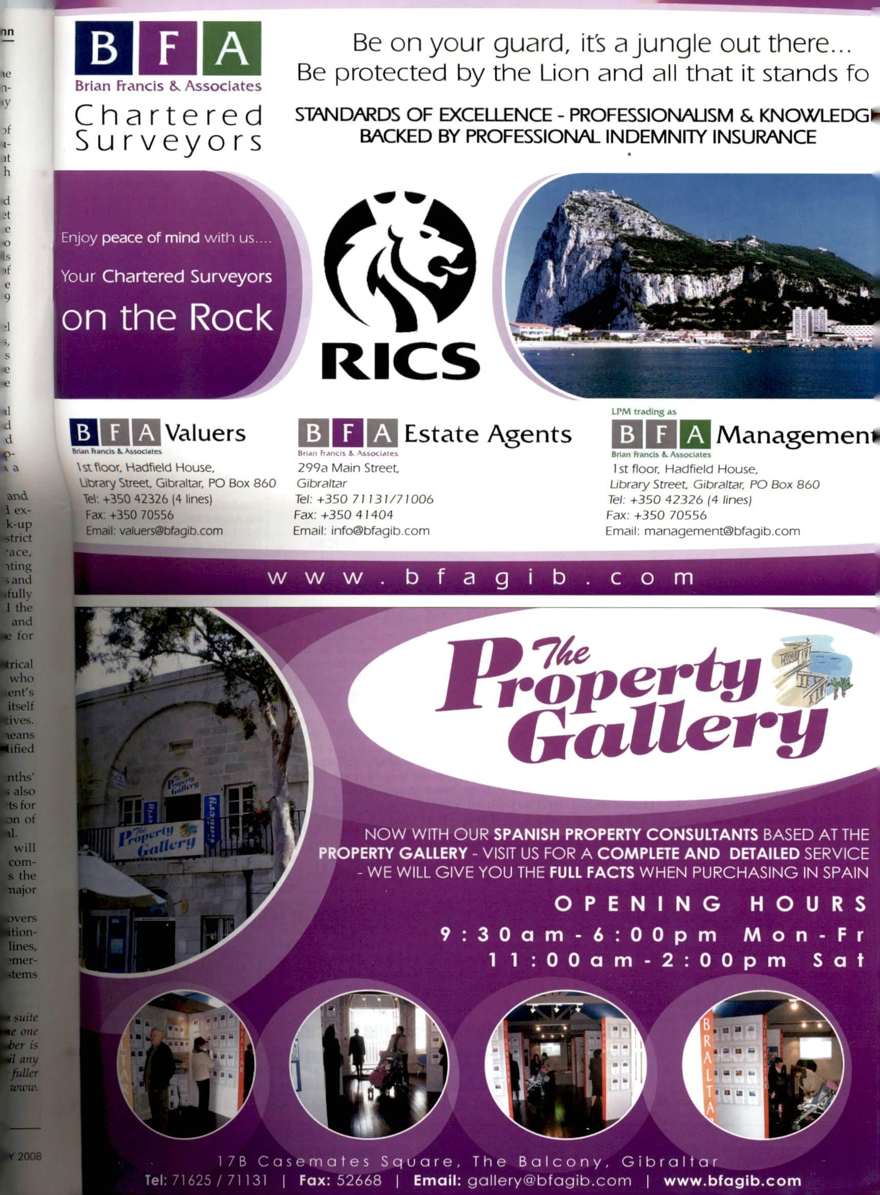 A New Year,A New Home Celebrate with Us... ii ,ilKj|i» Estate Agents ' Property Consultants^ftf',:;i| Property Management Mortgages Valuations Selling No-One Offers You More SswV," i>Sv=,v. Bray Properties Visit us at 3 Market Lane,Gibraltar Tel: 200 47777 Fax: 200 47745 www.brayproperties.com Btay Plopetties wishes evelyone a vely plospeloas 2008