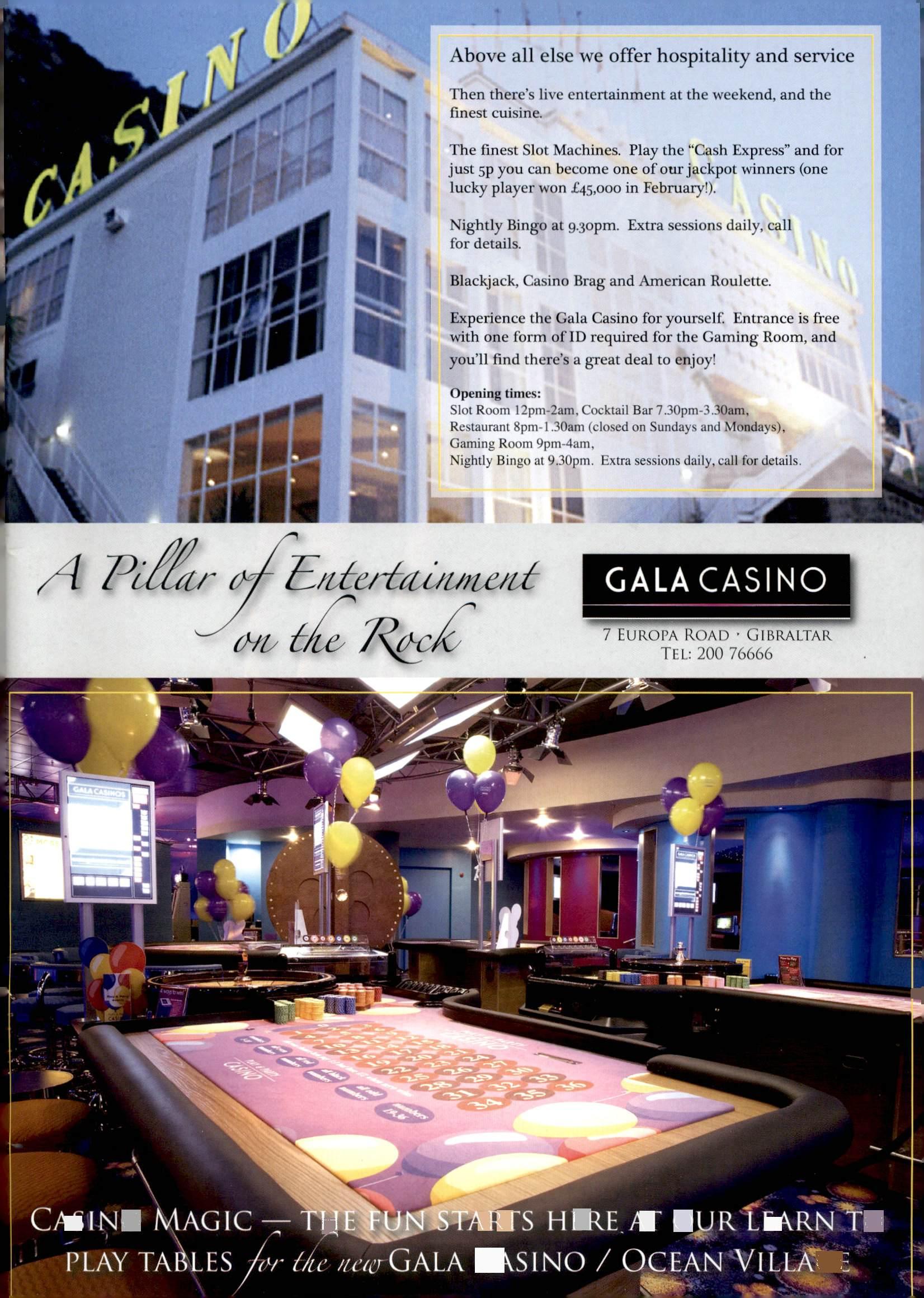 Blackjack, Casino Brag and American Roulette. Experience the Gala Casino for yourself. Entrance is free with one form ofID required for the Gaming Room,and you'll find there's a great deal to enjoy!