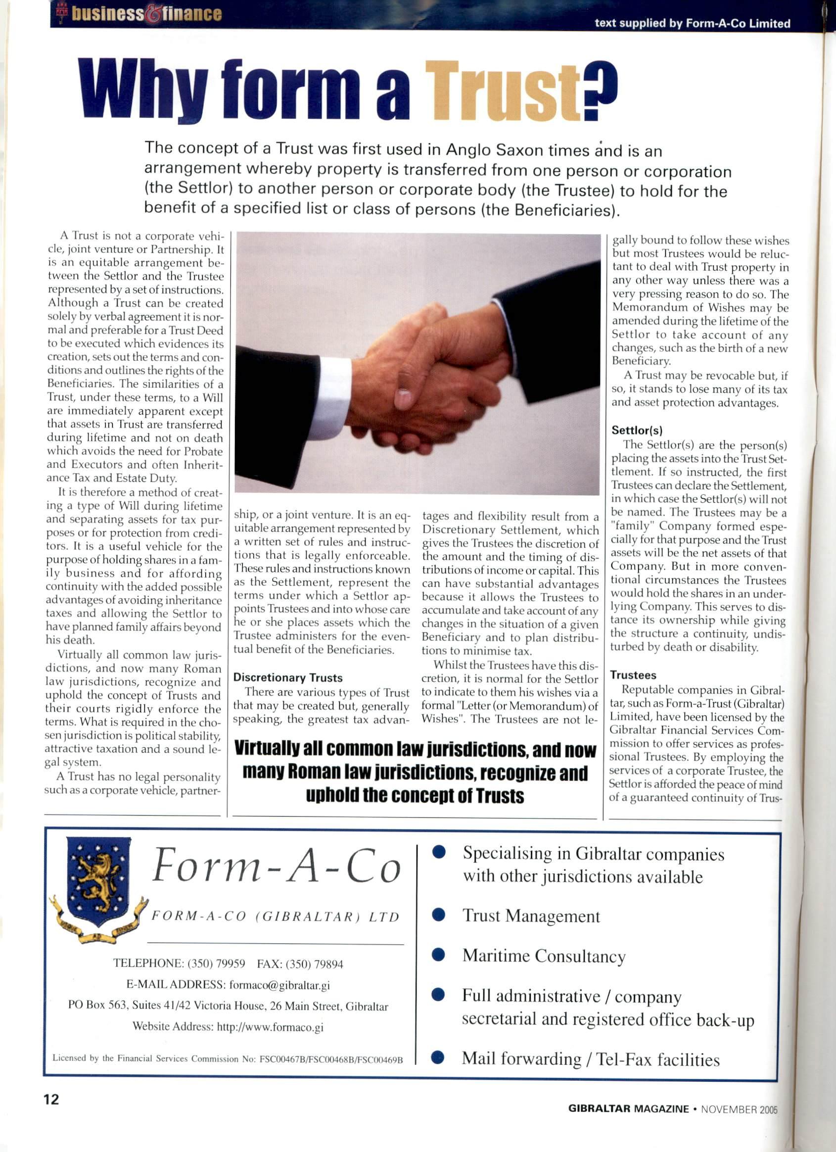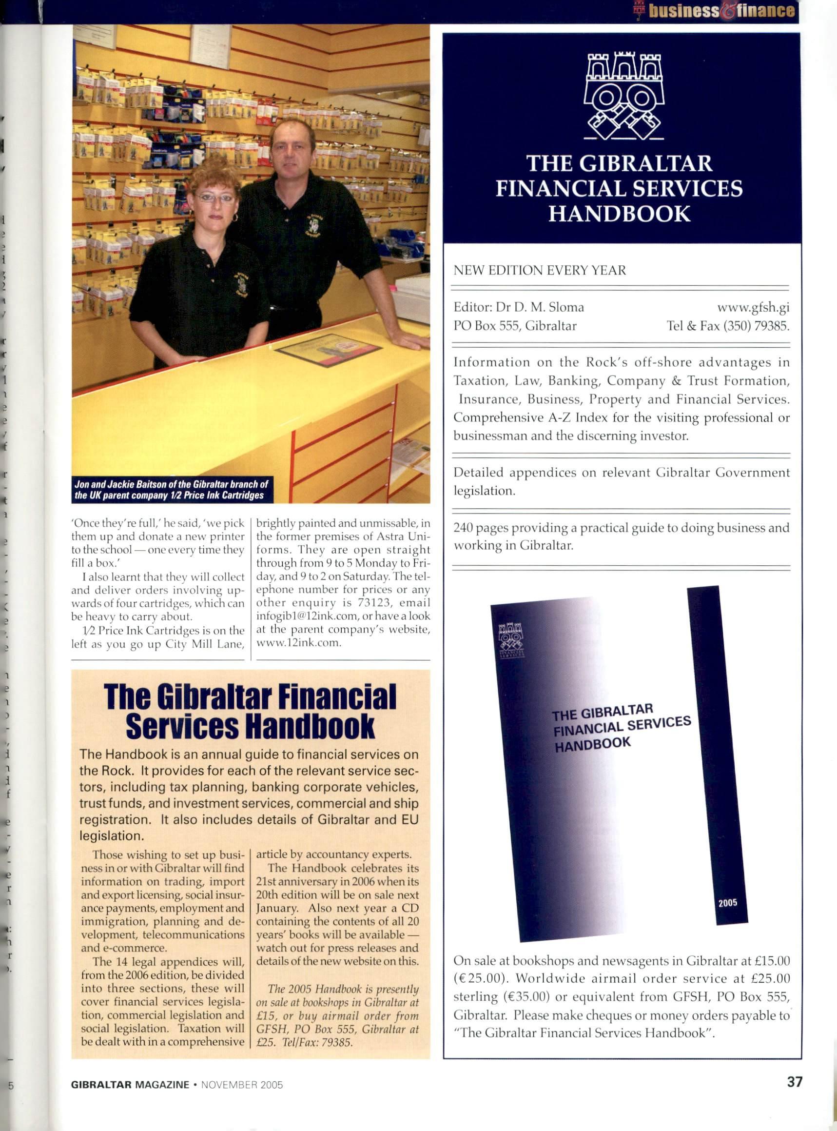 financialservices MASBRO INSURANCE BROKERS Weoffer full insurance with annualgreen cards on UK registered motor cars Suite 1A, 143 Main Street, PO l3ox 502, GIBRALTAR Tel: 76434 Fax; 76741 THE GIBRALTAR FINANCIAL SERVICES HANDBOOK Inlormalion on the Rock'^ off-shore advantages m Taxalion. Law, Banking, Company & Trust Formation. Insur ance, Business, Property and Financial Services. Comprehensive A-Z Index for the visiting professional < husinvssman and the discerning investor. Detailed appendices c isliition. 1 relevant Gibraltar Oovemmeni leg(.)n sale at bookshops and newsagents in Gibraiiar at t)5 Worldwide uirmail order service at £2.S sterling or cquivakm from GFSH,K)Bi^* 555, Gibraltar. business openings DATIfSJO^ CENTRAL. Do you have a corporate presence online? We are looking for business partners in any industry.(Tax exempt companies & non-residents only) Tel: 40335 Mobile: 58009152 Bone Fish Ltd, 3rd fir, International House accountants Durante Carboni Jardim Accountants & Auditors Suite 1 & 2, Newton House, 5 King's Yard Lane, Gibraltar Tel; 79033 / 70762 Fax; 76374 / 71060 G.A. OLIVERA & CO. ^Accountants & Auditors H Associated with RSM Kubson Ktiodes. Chartered Accountants Suite 1. Watergardens 4, PO Bo* 856, Gibraltar Tel : 77122 Fax; 40274 E-mail; olivera@)gibteiecom net A E.S.V. Hassan &Co Chartered Certified Accountants RO. Box 230 Suite 4, 9th Floor International Commercial Centre Casemates, Gibraltar Telephione; 71610 Fax: 70113 The Gibraltar Magazine Business & Finance special issue - every November Tel: 77748 for advertising details Olivero & Co. ACCOUNTANTS & AUDITORS Conespondenlfirm to: RtwIaiJ ]2/13 Block 5 Watergardens,PO Box 417, Gibraltar Tel: 78440 / 77134 Fax: 74716 busmessservices BEA Employment Agency Office and Corporate Services 40 City Mill Lane Mobile: 54005695 Tel: 45144 Mediterranean Computer Services Suite 1 Shell House, Line Walt Road, Gibraltar Tel: 42131 Fax: 42104 COUfllERS LTD S General Agents tor WORLDWIDE DISPATCHES 1 1 Cngii-ieer Lane. PO Bu. 532. Gibraltar Tal: 7377S / 48622 Fax: 74389 /48623 11 Specialists in Document cl Imaging and Filing Systems, RI .Microfilm Bureau Services, BUSINESS SYSTEMS Information Management and ( onsuilancy. CD-ROM Tilles. Computer Hardware & Software Dealesfbr Canon Ut Floor. Unit F4, Europa Business Centre Tel; 42723 Fax; 40612 ^ CompHter/ network giving of- yoo a headache? * Call us for a swift, reliable cure. 17 Convent Place Tel: 4-999-1 Fax: 4-999-2 www.pc-clinic-gib.com Email: info@pc-clinic-gib.com • Support Contracts • Network Installation & Troubleshooting • Wsb Design • PC Repairs. Upgrades & Construction • PC Maintenance THE PHONE DOCTOR Mobile Phone Unblocking Hands-Free * Accessories Batteries • Covers • Cases We buy, sell and exchange used mobile phones at the entrance to the ICC Tel:(00 34)678188 555 INTERNATIONAL ARCHITECTURAL & ENGINEERING BUREAU 1/9 Montagu Place, Ocean Heights. Gibraltar Tel: