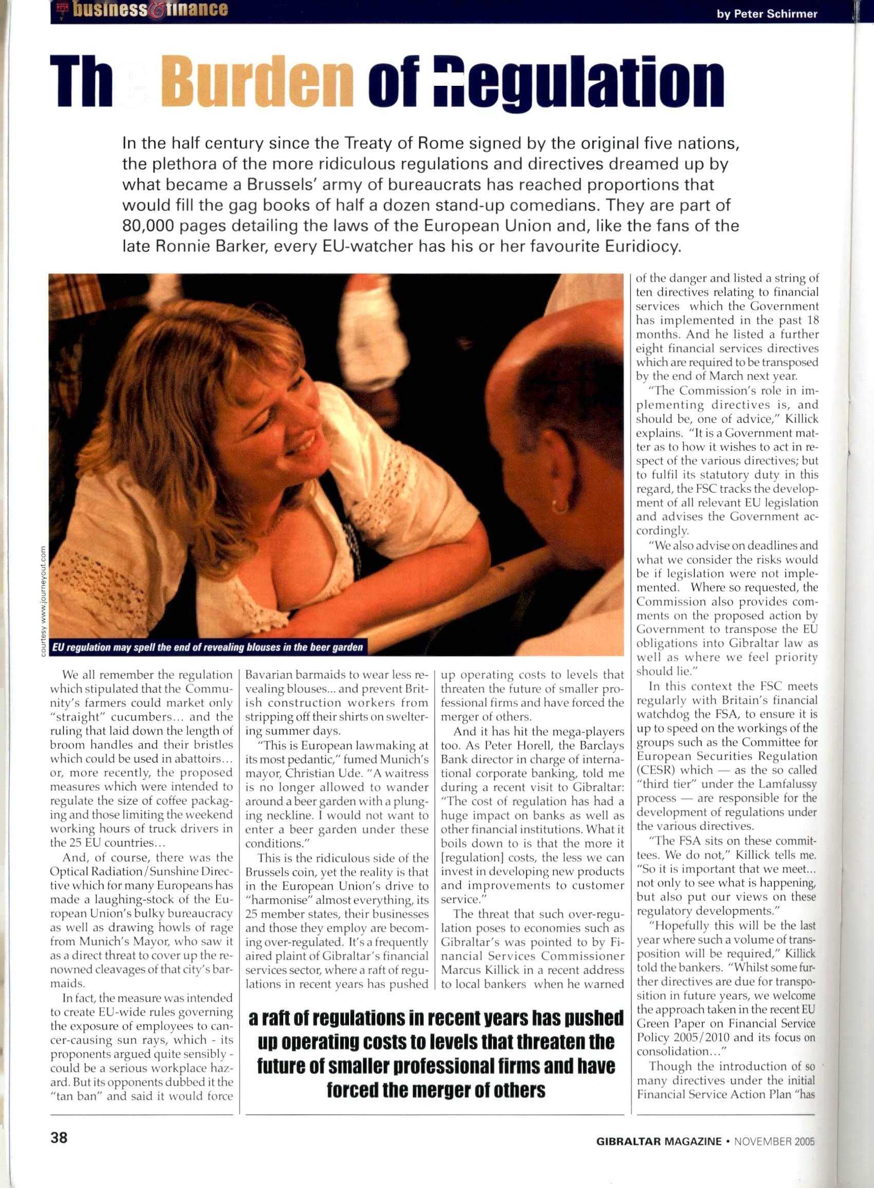 The Way it Used to Be Threshold: We can help Don't Panic: Artists support for buttons Hauntings.... The Naming of Stone Mountain Frankie Went to Gibraltar business & finance •# " i Professional Indemnity Insurance: Are you covered? Why Form a Trust? Opportunities in International Trade Who Guards the Guards? Developing Performance A Co^orate Presence On-line Game On for Hassans Port Expansion: Are we ready? Selecting a Company's Greatest Asset The Right Advice Ink for Less The Burden of Regulation Data Protection Act Is Your Business Turning Away Customers? 62-63 Health & Fitness 76 Prize Puzzle 77 Gibraltar's Wild Flowers 90-91 Around Town — with H Infomiation 56-57 City Centre Map 59 Calendar of Events 94 Gibraltar Information F 83-89 Wining & Dining on the Rock 89 From Thyme to "thyme" Financing a Second Home Property Overview Clifftop Views Home Ownership Tales from the Hills leisure aactlvltes 60 Thespians Celebrate Trafalgar 68 Extreme Sports 70 Clubs & Activities Guide history&heritage 80 Duke's Dalliance: A public affair 0 At Barclays you get the strength and security of one of the world's major banks. In Gibraltar, we work with you to tailor in Gibraltar And all around the world financial solutions that answer all your banking needs. Local Support. Global strength. Both good reasons to bank with Barclays. Call (00) 350 52378 to find out more, e-mail; gibraltar@barclays.co.uk BARCLAYS Barclays Sank PLC and Barclays Bank Offshore FInarKlal Services (CbraKar) Limned are licensed by the Financial Services Commission to cortduci banking and Investment business. Bardeys Bank PLC is registered In England. Registered No. 1026167. Registered Office; S4 Lombard StreeL London EC3P BAH. GIBRALTAR MAGAZINE • NOVEMBER 2005