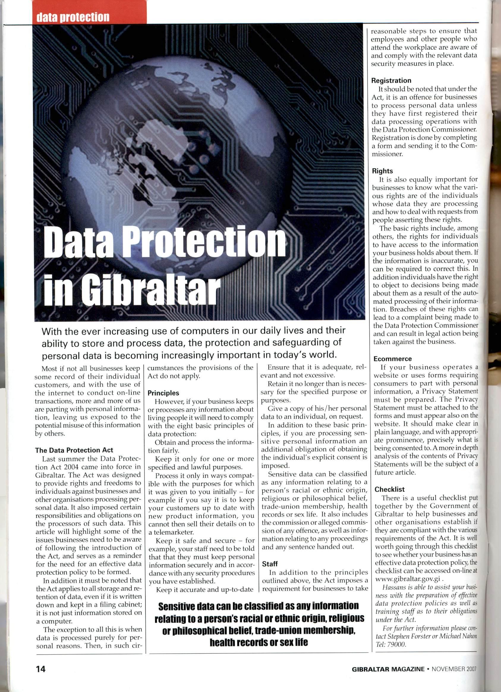 For further information please contact the Data Protection Division of the Gibraltar Regulatory Authority on telephone 74636.