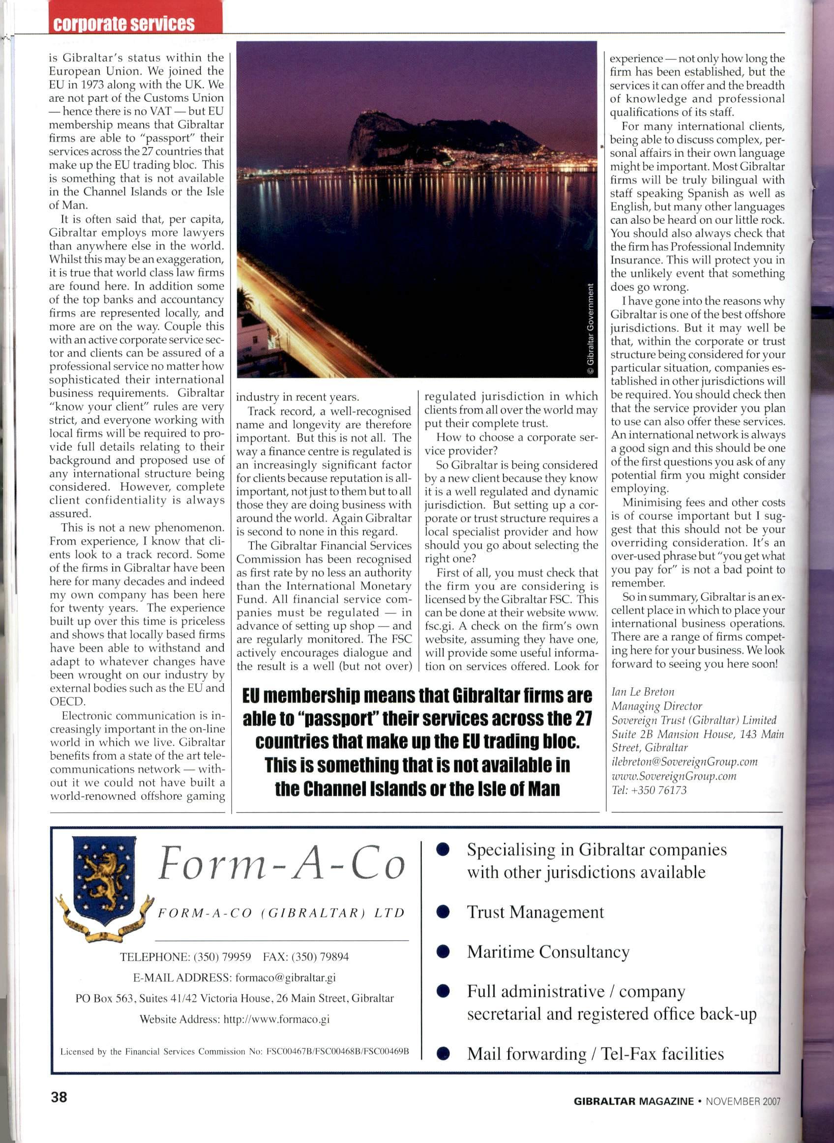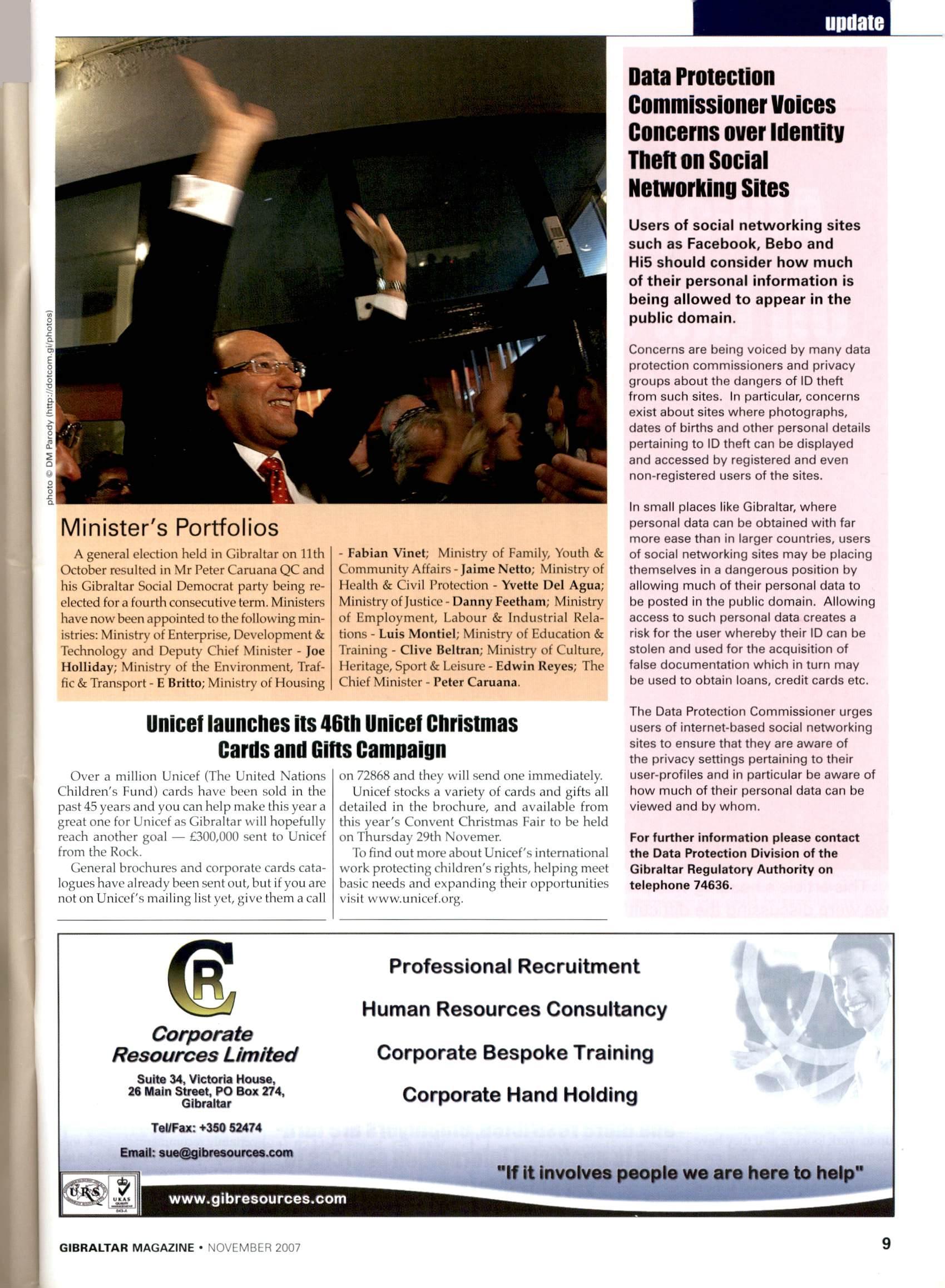 Professional Recruitment Human Resources Consultancy Corporate Bespoke Training Corporate Hand Holding *'lf it Involves people we are here to help' GIBRALTAR MAGAZINE • NOVEMBER 2007