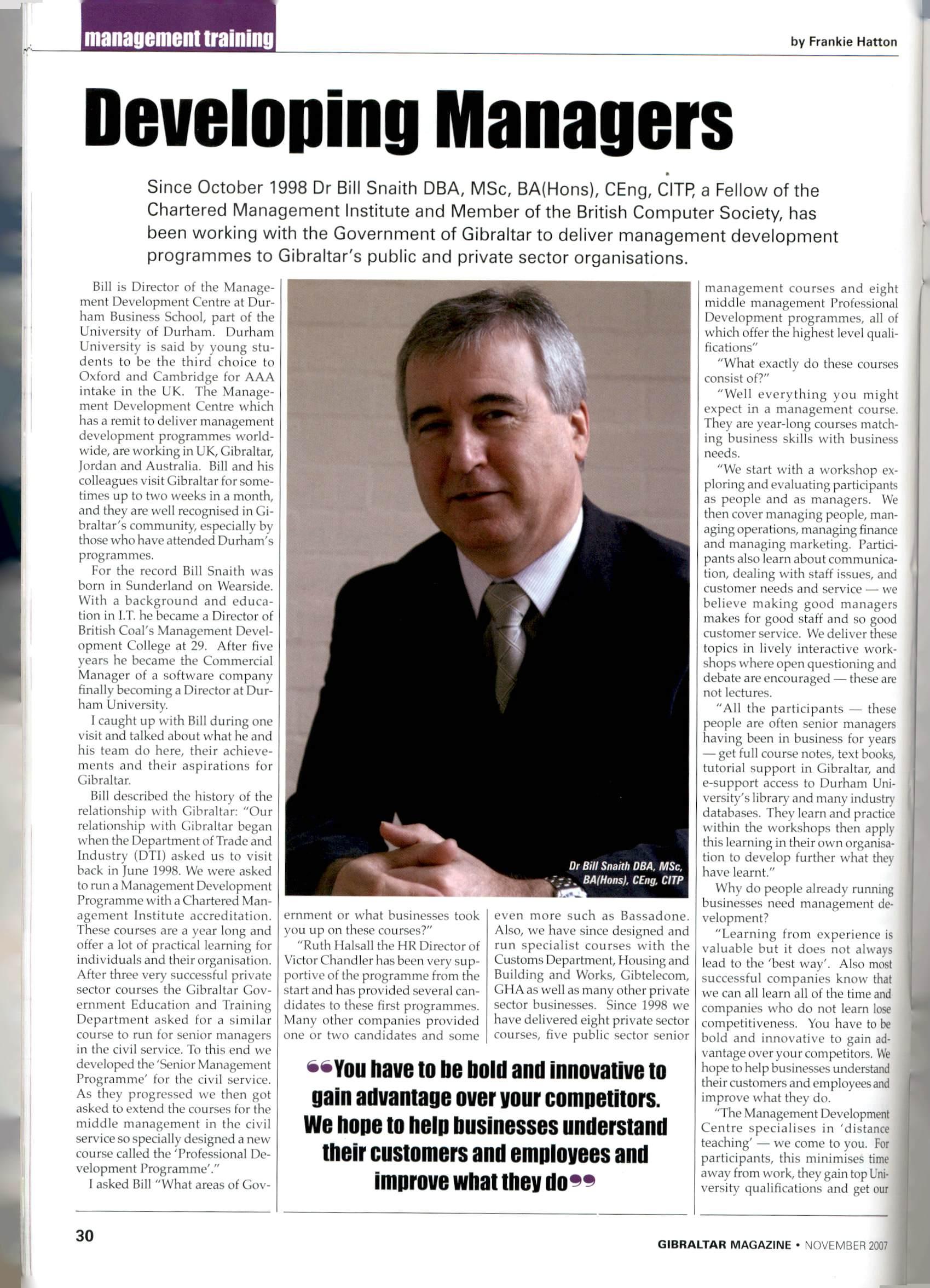 BespokExecutive Management • Executive • Search • Selection GIBRALTAR MAGAZINE • NOVEMBER 2007