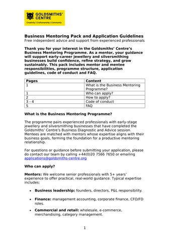 Business Mentoring Programme Guidelines and FAQs for Mentors