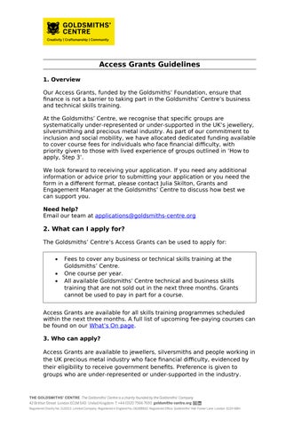 The Goldsmiths' Centre - Access Grant Guidelines