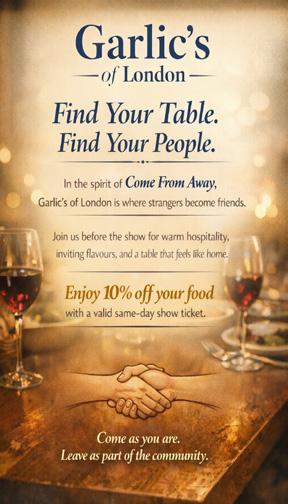 COME FROM AWAY is presented through special arrangement with Music Theatre International (MTI). All authorized performance materials are also supplied by MTI. www.MTIShows.com