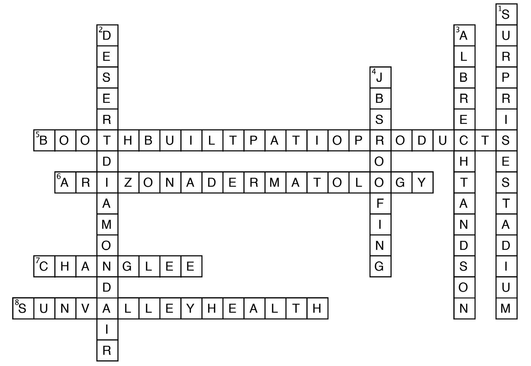 MARCH 2024 • THE GRAND SEASON 35 FOR ADVERTISING INFORMATION CALL (623) 594-1630 623-979-3339 www.boothbuilt.com ROC No. 162384 • BONDED • INSURED LOVE your OUTDOORS! Sun City Home Owners Assoc SHADE − PRIVACY − LUXURY • Patio Covers • Sunroom & Enclosures • Privacy Panels • Rolldown Shades • Pergolas • Gutters ACROSS 1 Not so hot? 5 Dog tags, e.g. 8 Quick look 12 Antioxidant berry 13 French vineyard 14 Impetuous 15 Dungeon’s quality 17 Actress Rae 18 Small batteries 19 Detroit hoopster 21 Like a neglected lawn 24 Coop group 25 Within (Pref.) 26 Foppish behavior 30 Caustic cleaner 31 Loud 32 Dean’s list stat 33 Writer Steel 35 Three- -- sloth 36 Barn birds 37 Travesty 38 “Jane Eyre” author 41 Tofu source 42 Chicago’s Mayor Lightfoot 43 Hanging loosely 48 Location 49 Swiss canton 50 Roasting spot 51 Church song 52 Domino spot 53 Harvest DOWN 1 Bankroll 2 Obamacare acronym 3 Scooted 4 Japanese emperor 5 Frosts a cake 6 Hosp. workers 7 Hitchcock forte 8 Overly proper 9 Bridge position 10 Canadian gas brand 11 “Star Trek II” villain 16 Aye undoer 20 “500” race 21 Use a blowtorch 22 New Age singer 23 Genesis garden 24 Salutes 26 Prettified 27 Composer Stravinsky 28 Detail, briefly 29 Created 31 Salamander 34 Sea off Sicily 35 “Fearless” singer Swift 37 Boating hazard 38 Humdrum 39 “Gilmore Girls” daughter 40 Utah city 41 Use scissors 44 “Exodus” hero 45 “-- had it!” 46 Museum-funding org. 47 Econ. measure CROSSWORD PUZZLE Solution on page 37