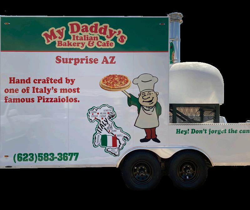 Buy One Dinner Receive the 2nd Of equal or lesser value TUESDAY, WEDNESDAY & THURSDAY 12851 W. Bell Rd. Crossroads Towne Center www.PortofinoWest.com 623-583-1931 Only Open For Dinner • Hours: Tue-Sun 2-8 • Fri & Sat 2-8:30 • Sun 2-8 Banquet Room, Private Room & Catering Available CLOSED MONDAYS 50% OFF SPAGHETTI WITH MEATBALLS * with purchase of beverage Not valid on holidays or with other offers. No substitutions. Expires 6/30/24. COMES WITH SOUP OR SALAD $12.95 Not valid on holidays, other offers and daily specials. No substitutions. Not valid on Mother’s Day or Father’s Day. Expires 6/30/24. NOW TAKING RESERVATIONS FOR FATHER’S DAY! LIVE MUSIC EVERY FRIDAY! Daily from 2-4 PM on Pasta section. EARLY BIRD SPECIAL! Not valid with coupons or on holidays. Not valid on Mother’s Day or Father’s Day. $13.95 HAPPY HOUR 2-4PM HOUSE WINE RED & WHITE $5.95 Not valid for Mother’s Day or Father’s Day. 623-537-5900 BYOB! George, owner Dining Room Open with Social Distancing REAL CHICAGO PIZZA TRYOUR 18795 N. Reems Rd, Suite 112 1/2 Block South of Grand on Reems CLOSED SUNDAYS & MONDAYS! Locally Owned & Operated Your Neighborhood Pizza Shop Since 2014 Tues-Thur 11am to 8pm • Fri & Sat 11am to 9pm Dining Membership S S ummer ocial JOIN FEES: $250 INDIVIDUAL $325 COUPLE MAY 1 - OCTOBER 31, 2024 CALL 623-556-8807 • DINING • EVENTS • ENTERTAINMENT (FOOD & BEVERAGE NOT INCLUDED) 99th Ave & Thunderbird in the Thunderbird Plaza next to Family Dollar 13600 N. 99th Avenue Sorry No Checks All Food Prepared Fresh Daily Family Owned & Operated COCKTAILS AVAILABLE WHILE YOU WAIT 623-974-3601 DINING ROOM NOW OPEN! NEW HOURS - OPEN 7 DAYS! Sun - Thurs 11am - 7pm Fri - Sat 11am - 8pm DINE IN - TAKE OUT - DELIVERY OPEN ON MOTHER’S DAY! My Daddy’s Italian Bakery & Café Now Serving 11677 West Bell Road • 623-583-3677 In Toliver’s Plaza across from Coyote Lakes OPEN: Mon-Thurs 6 am - 5 pm • Fri-Sat 6 am- 9 pm • Sun 6 am - 3 pm Join us on Friday & Saturday nights from 5pm-9pm, for AUTHENTIC made to order WOOD FIRED Pizza! Follow up on Facebook or visit the My Daddy’s Italian Bakery & Cafe to learn more about what’s baking in our ovens! Beer & Wine! Jim’s Burgers 17019 W. Greenway Rd. #118, Surprise, Arizona • 623-584-8833 Monday: Closed Sun, Tues, Wed: 7am - 2pm Thur, Fri, Sat: 7am - 8pm Eat in or Take out! & Eggs Coffee FREE with any breakfast Jim’s Burgers & Eggs With this coupon. Not valid with other offers. Expires 6/15/24.