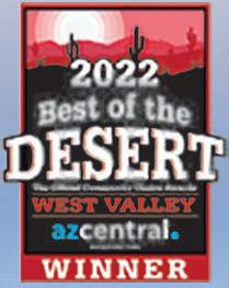 4 THE GRAND SEASON • OCTOBER 2022 WWW.THEGRANDSEASON.COM INSIDE THIS ISSUE You . . . . . . . . . . . . . . . . . . . . 16 Inspire . . . . . . . . . . . . . . . . . . 22 Dining Guide . . . . . . . . . . . . . . 25 Dinner & A Movie . . . . . . . . . . 33 Love . . . . . . . . . . . . . . . . . . . . 34 Shop Local . . . . . . . . . . . . .38-40 Growth . . . . . . . . . . . . . . . . . . 44 Service Directory . . . . . . . .50-51 All rights reserved. Copyright 2022 Arizona MarketPlace LLC Find us on Facebook www.facebook.com/GrandSeason The publisher reserves the right to edit, revise, or reject any advertising copy submitted for publication. Publisher’s liability for errors in ads will, in no case, be greater than the cost of the space in which the error occurs. Published by Arizona MarketPlace LLC P.O. Box 5474 Sun City West, AZ 85376 623-594-1630 OCTOBER 2022 THEGRANDSEASON.COM Pat Goodson PUBLISHER 623-594-1630 X 1 pat@thegrandseason .com Melissa McCullough ASSOCIATE PUBLISHER/EDITOR 512-619-6980 melissa@thegrandseason .com PROUD MEMBERS OF Christine McGrew-Bryant 913-837-0057 • christine@thegrandseason .com Sam Himes 623-363-4977 • sam@thegrandseason com Lana San Diego 602-380-8999 • lana@thegrandseason .com For advertising information contact our sales team: Matthew Toops GRAPHIC DESIGNER 623-594-1630 X 2 • matthew@thegrandseason .com *Offer is valid only if there is no periodontal diseaseEXAM, X-RAYS & BASIC CLEANING* $99 GENERAL DENTISTRY, ORAL SURGERY, DENTAL IMPLANTS, ENDODONTICS & CUSTOM DENTURES 2 CONVENIENT LOCATIONS TO SERVE YOU! 13830 W Camino Del Sol Ste 200, Sun City West, AZ 85375 (833)976-2366 https://sunridgedentalcare.com/ 10147 Grand Ave #A-5, Sun City, AZ 85351 (480)536-8925 https://foxfamilydental.net/ MOST INSURANCE PLANS ACCEPTED “We chose the place randomly as we are new to the area and boy did we score! The doctor and staff were just fantastic!” “This place is wonderful. Everyone is so courteous and make you feel at ease. They do explain everything so that you know exactly what they’re talking about. I highly recommend them.” “I wish I could give them 10 stars because everyone is very courteous, professional and friendly.” VIA GOOGLE REVIEWS *Offer is valid only if there is no periodontal disease