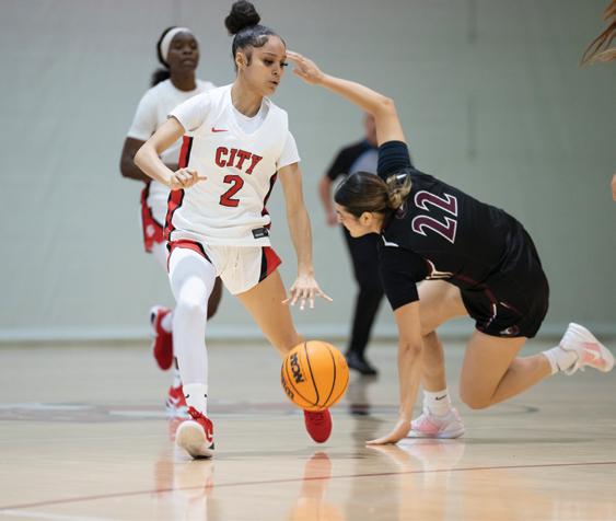 With less than 10 minutes left in the first half, City College continued to make its 3-pointers and maintained a stable lead, while on defense, they forced the Bulldogs to choke up and run down their shot clock on multiple occasions.