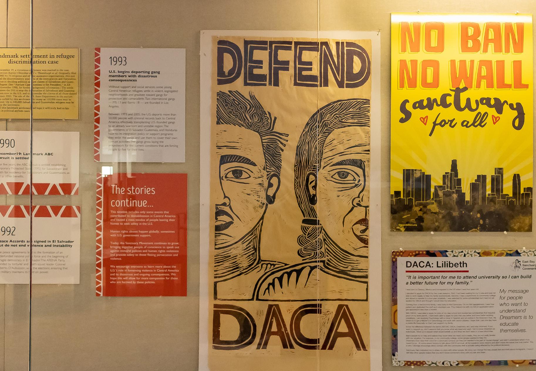 According to Mayers, putting together the research guide was an extensive project and a collaboration of many different organizations including East Bay Sanctuary Covenant (EBSC), ASV, Voice of Witness (VOW), Voices UnMuted, and Mayers himself. A video presentation, “INTO THE LIGHT (Stories and Lived Experiences of Immigration)” is showcased at the exhibit and can also be accessed through the library’s