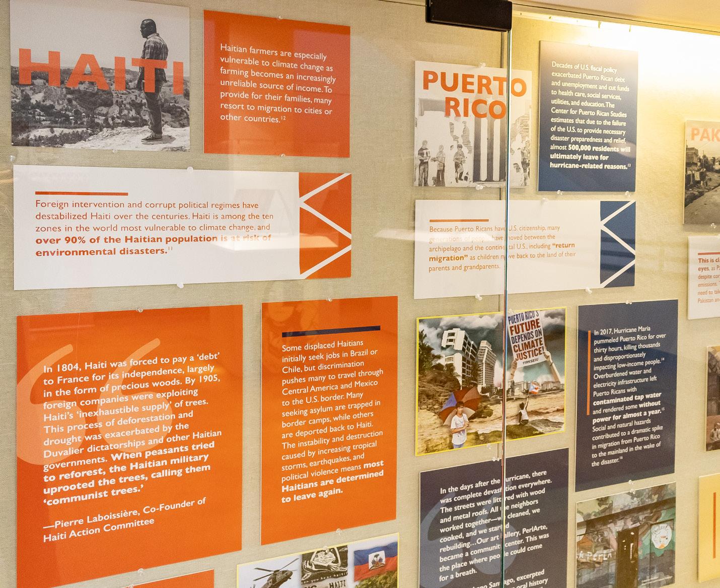 This multimedia exhibit offers historical facts paired with beautiful artwork, posters, collages, and a looping video series showcasing migration stories. There are also posters amplifying the refugees’ voices, telling their unique stories.