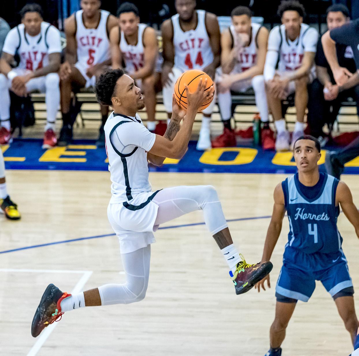 The decisive City College attack forced the Hornets to muster a strong defense to slow down the charging Rams. The Rams could only chop the Hornets' lead down to two points.