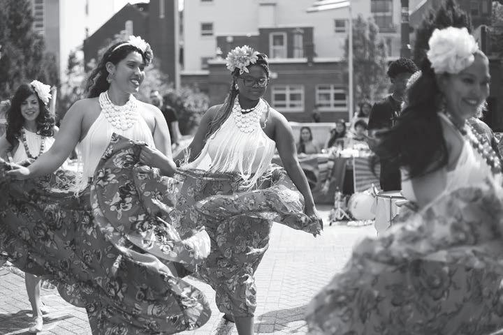 Like their name’s homage to Columbia Heights suggests, the alternative tropical band Cumbia Heights is rooted in Northwest D.C., where many of the bandmates lived and first met. Composed of about 10 members, the dynamic group blends guitar, trumpet, accordion, saxophone and drums as they put their own spin on cumbia — a popular Latin American musical tradition originating from enslaved people in the Spanish colonies that carries African, Indigenous and European influences.