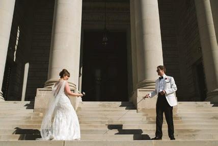 The couple poses on their wedding day in 2016.
