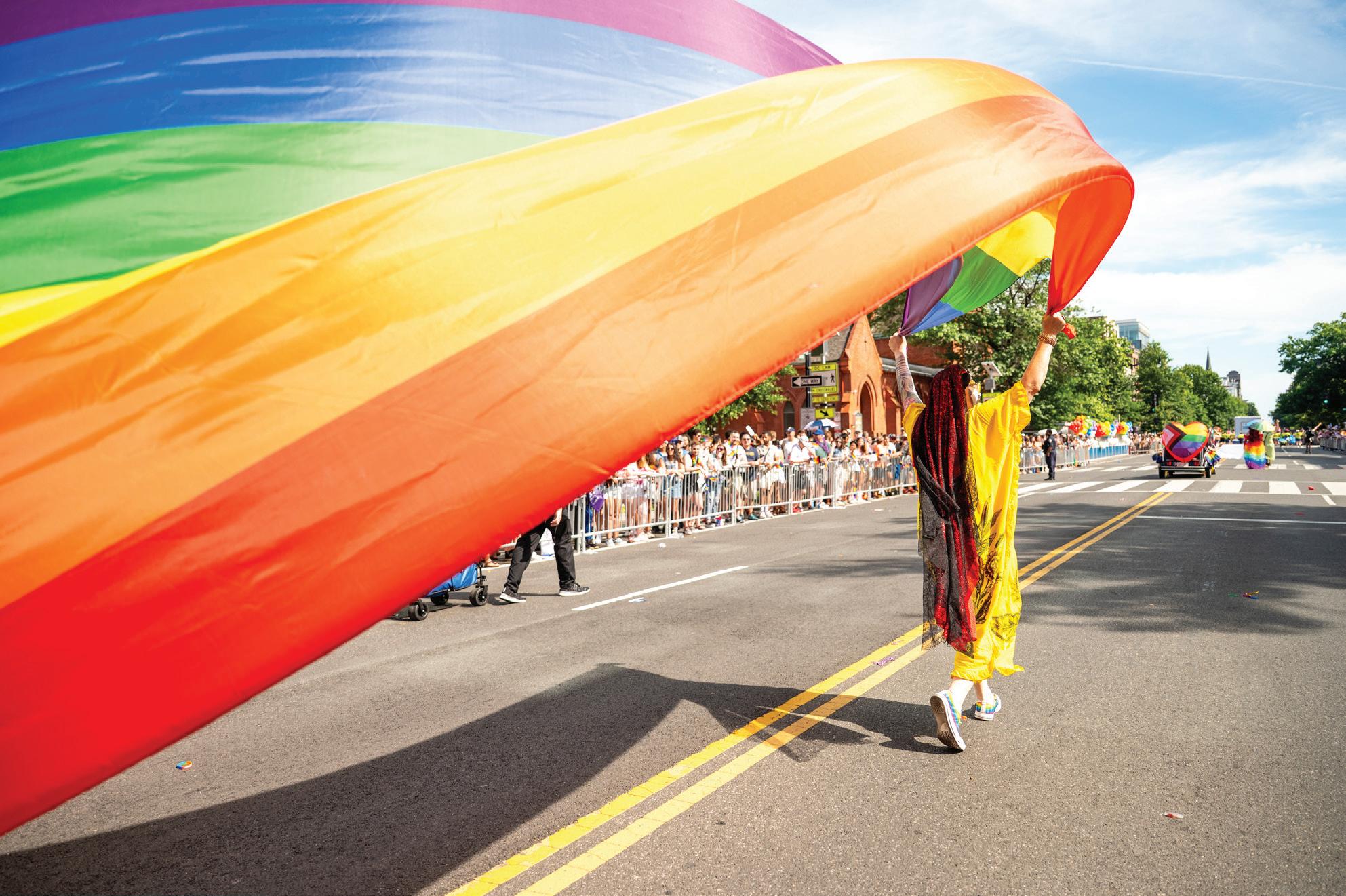 Sister Felix Culpa of the DC Sisters of Perpetual Indulgence waves a pride flag during the pride parade last year.