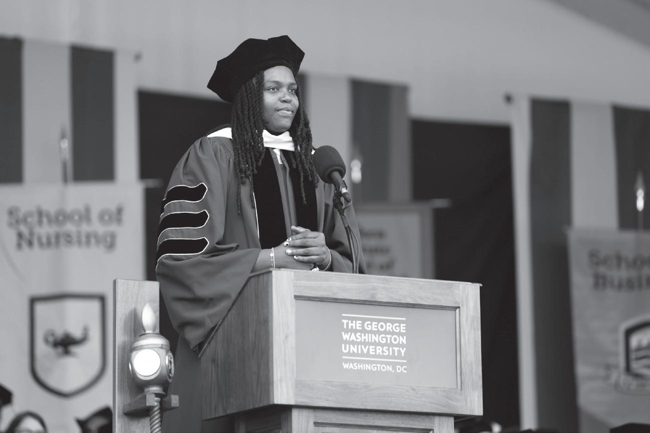 Speaking on Sunday before the more than 8,000 graduates on the National Mall, the occupational therapy doctoral graduate recalled spending long stretches in the principal’s office as a child, questioning why things had to be done “one way and not the other.” Anzaldúa said GW was the first place that didn’t just tolerate her questions but helped shape her “trouble making tendencies” into advocacy.