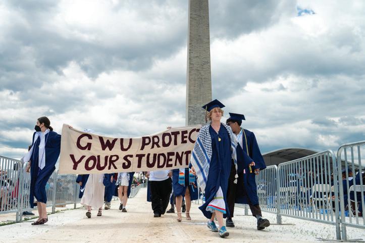 Cecilia Culver, an economics and statistics graduate, used her speech to criticize the University for suppressing proPalestinian activism related to the war in Gaza and urge graduates to withhold donations from GW until officials disclose all financial investments and divest from companies tied to Israel. University Spokesperson Kathy Fackelmann said Culver’s remarks were “materially different” than the speech she submitted ahead of the ceremony, and officials are investigating whether Culver violated the University’s events protocol or Student Code of Conduct.