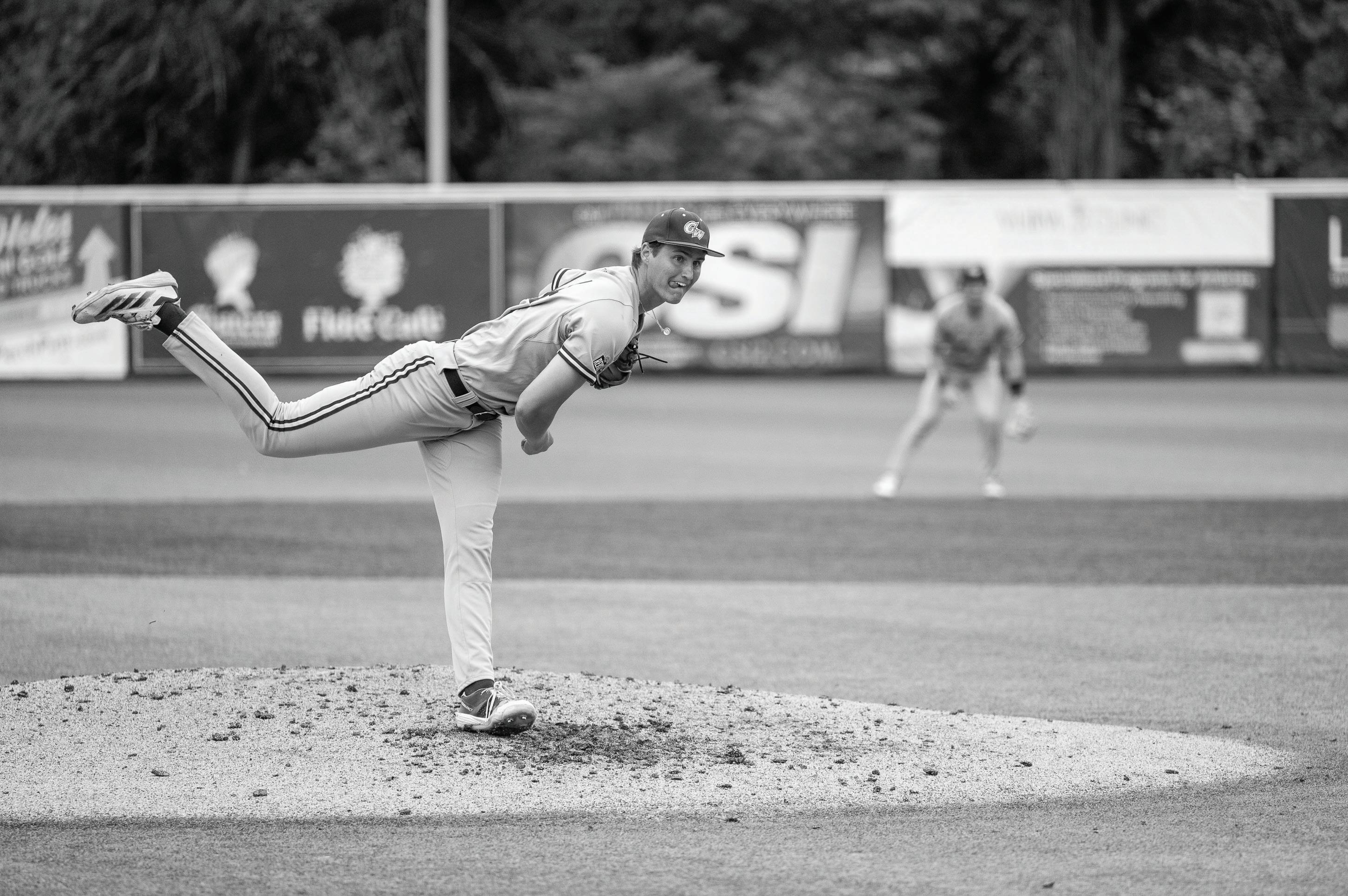 Right-handed pitcher Brayden Kurtz throws a pitch during the game against Georgetown University Monday.