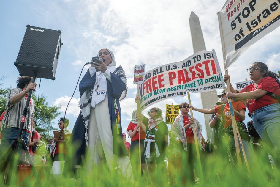 and a recent GW graduate spoke about the history of Palestine and called for an end to the war in Gaza and the liberation of the Palestinian people.