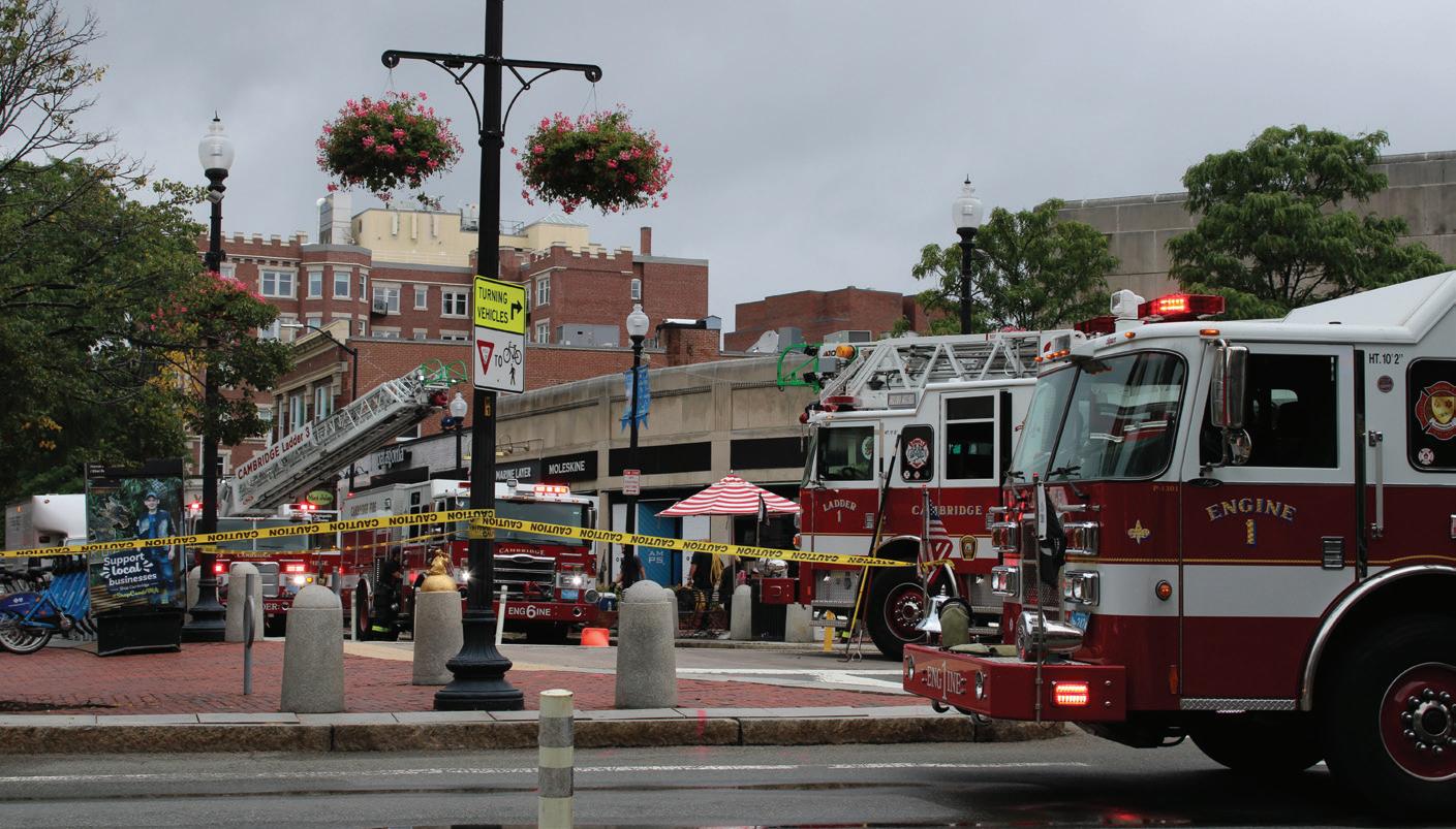 MANHOLE EXPLOSIONS. Two manhole explosions on Wednesday shut down traffic in Harvard Square as undergraduates moved in. No bystanders were reported injured, but a firefighter was hospitalized due to smoke inhalation. The area was cordoned off overnight. BY IAN C. HUA—CRIMSON PHOTOGRAPHER