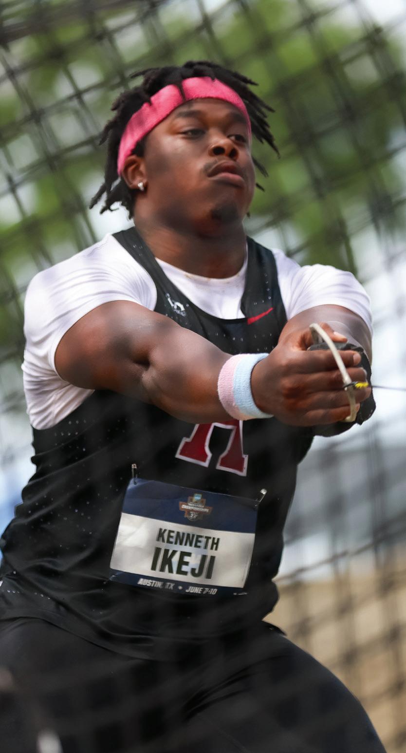 Along with Ikeji’s national championship in the men’s hammer throw, the two swept the event. Her teammate senior Estel Valeanu took a spot on the podium for her event, earning sixth place in the discus throw, with a mark of 58.25 m to break her previous school record. Senior Sarah Omoregie earned 16th place in the women’s shot put with a throw of 16.90 m.