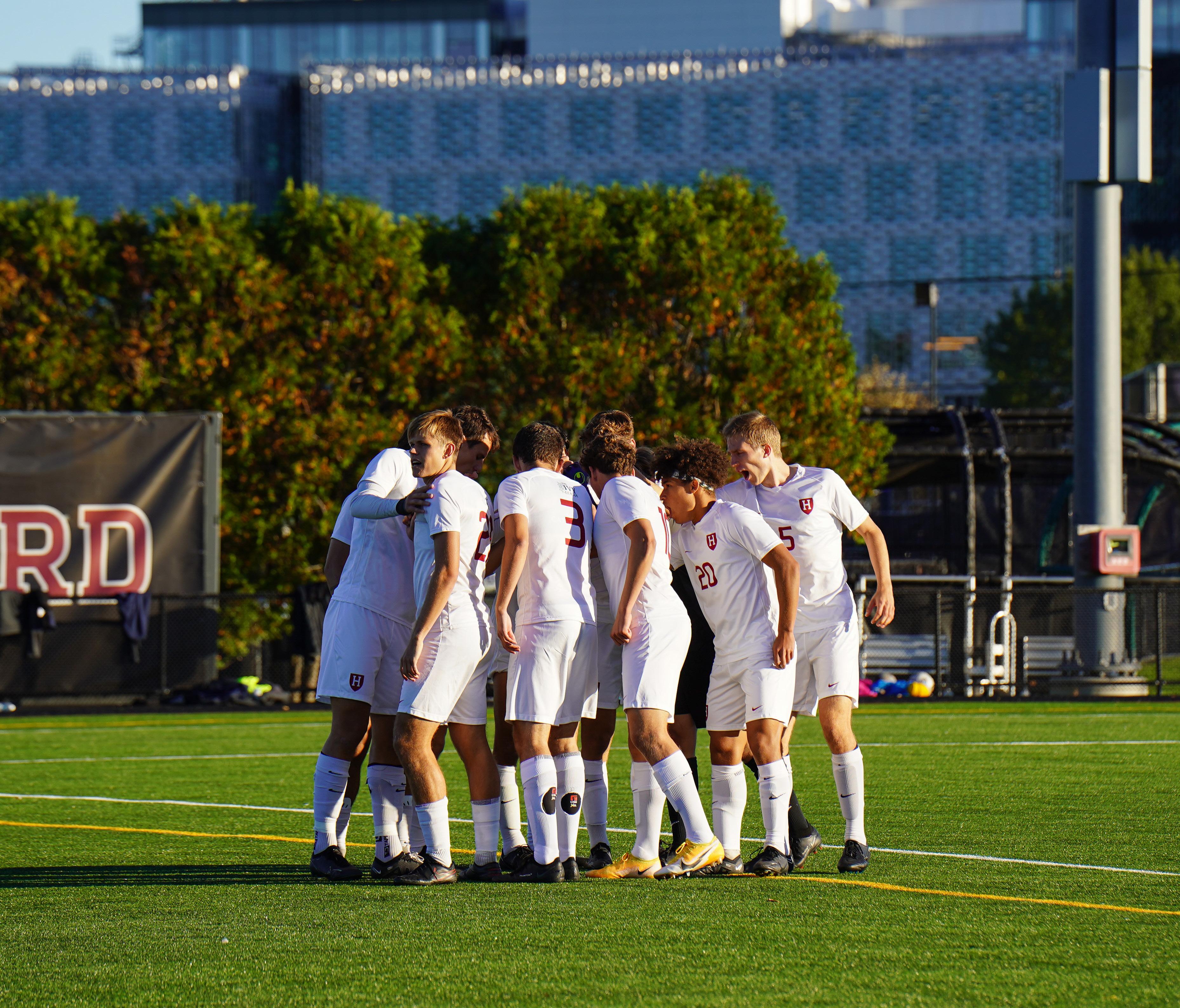 The Harvard men’s soccer team huddles up against Columbia on Oct. 8 , 2022. SAMUEL M. BENNETT — CRIMSON PHOTOGRAPHER SEPTEMBER 29, 2023 THE HARVARD CRIMSON SPORTS 16