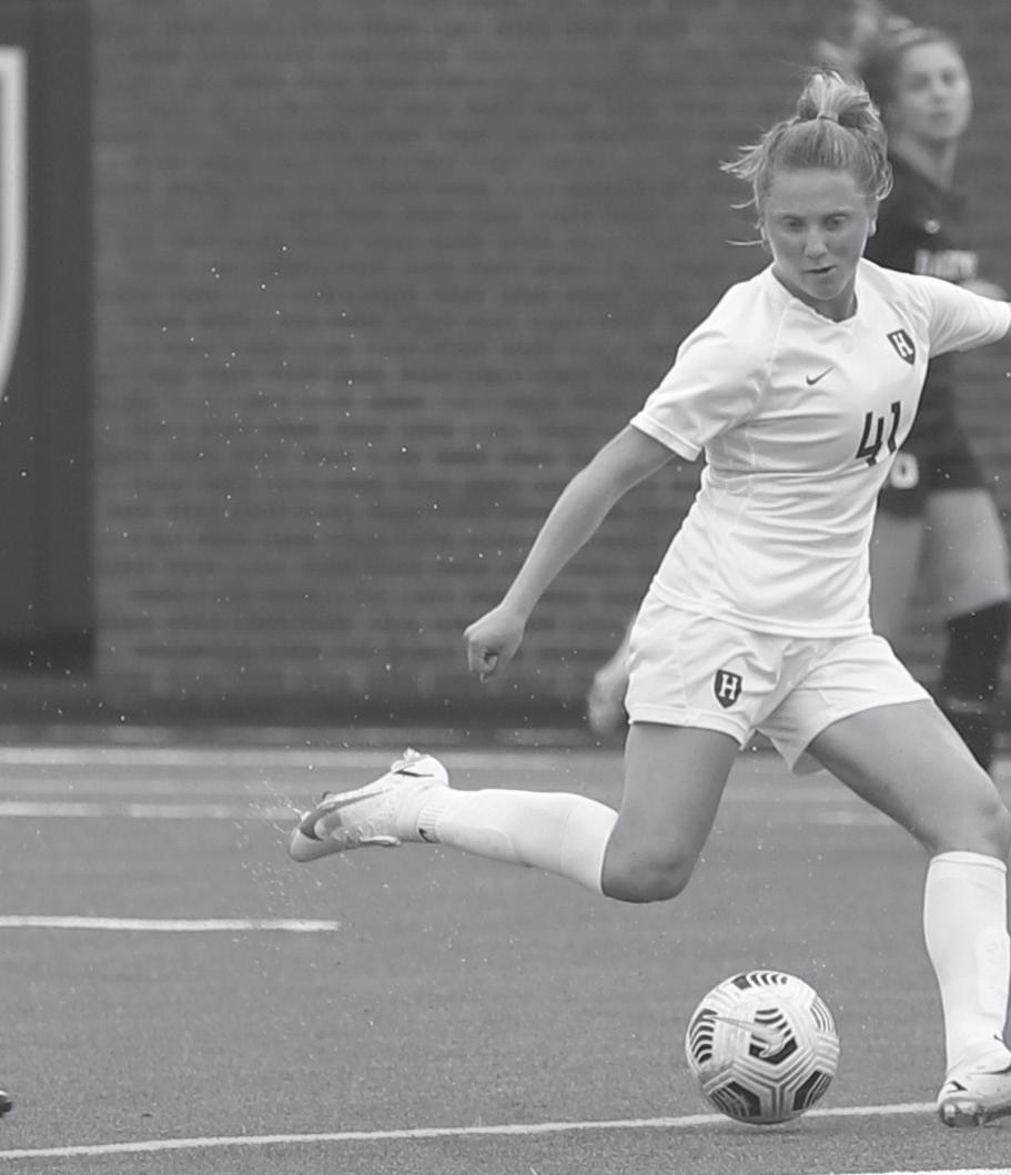 with Ivy League eligibility due to her gap year, Bebar and the Crimson truly excelled. The Harvard team recorded an impressive 13-4-2 season overall. The Crimson won the Inaugural Ivy League Tournament, claiming dominant victories over both Princeton and Columbia. The team continued its success in the NCAA postseason, securing the home field advantage for the first round in the tournament against the University of Maine. Unfortunately, in a contest that would mirror the team’s 2022 endeavor, the team made it to the second round but lost a close 1-0 battle against Michigan State to end its season.