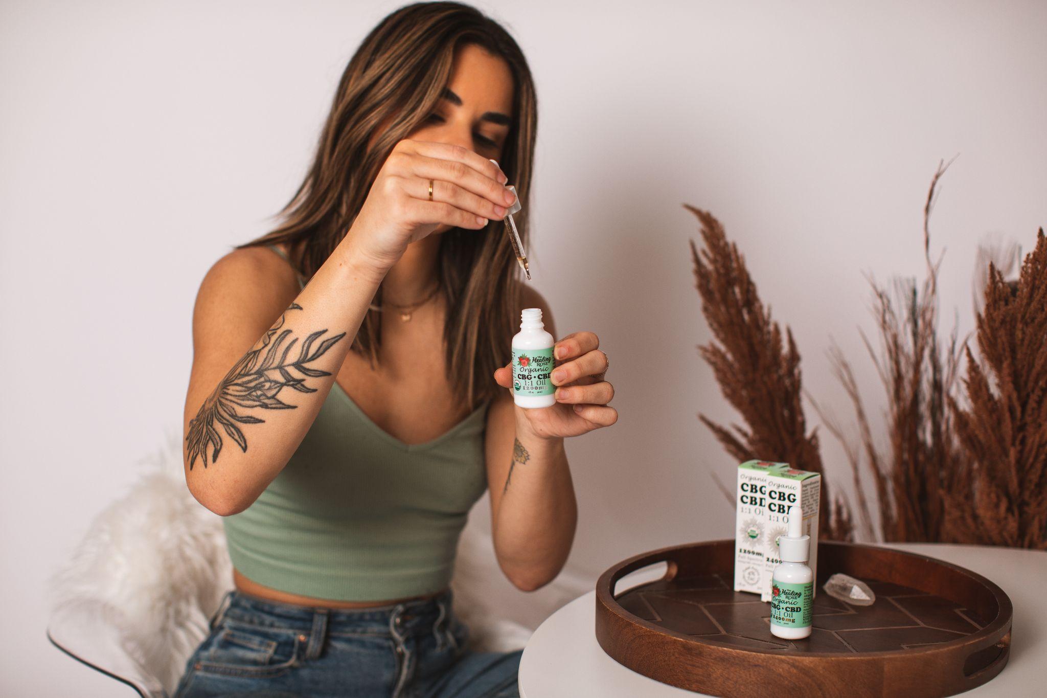 Ingredients: Organic Jojoba Oil†, Organic Safflower Oil†, Organic Apricot Kernel Oil†, Organic Full Spectrum CBG CO2 Extract, Organic Full Spectrum CBD CO2 Extract, Non-GMO Vitamin E Oil, Organic Peppermint Oil, Organic Clary Sage Oil, Organic Rosemary Oil