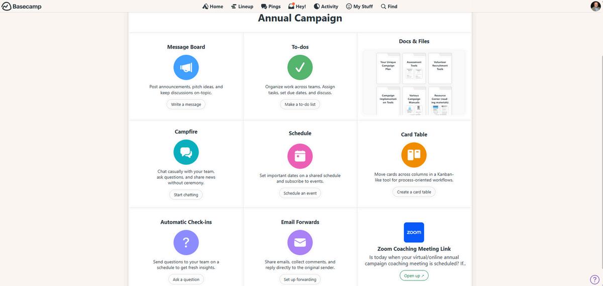 Basecamp is the online platform used by The Healthy Non-Profit to organize your annual campaign.