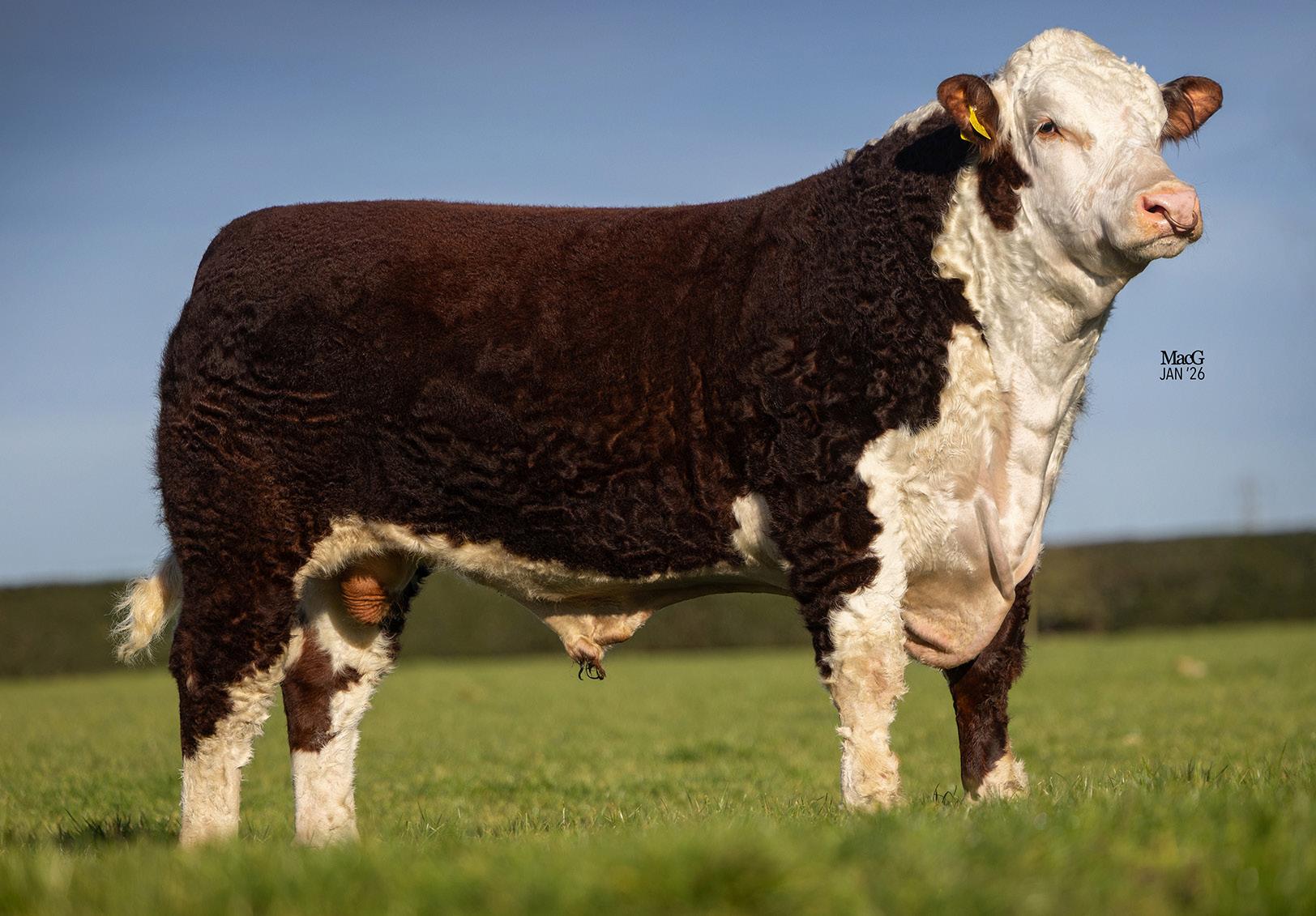 Chuckles is a thickset well-marked, dark-coloured young bull with great locomotion. His temperament is second to none having been successfully shown in 2025 by an 11-year-old, his highlight being placed 1st in his class at the National Poll Show. With a packed pedigree behind him, Chuckles would be well worth a look. Eligible for retest.