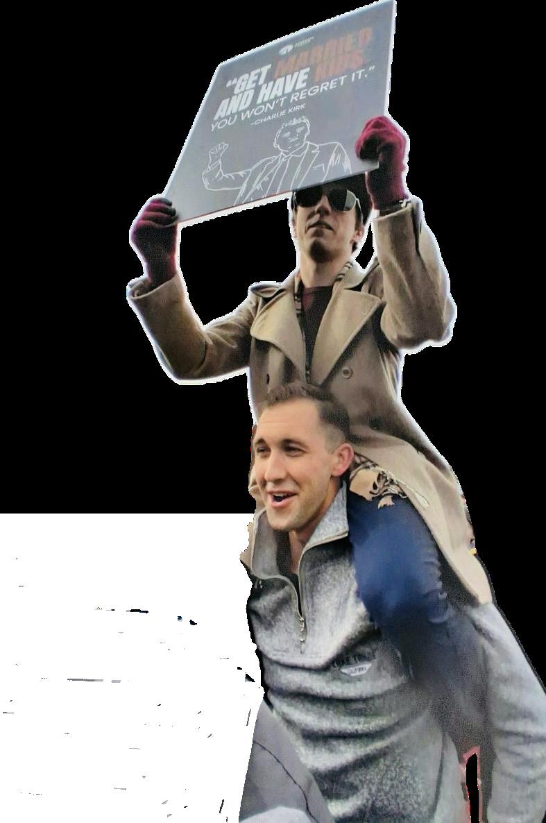 Senior Andrew VanDevere on freshman Theodosius Santalov’s shoulders at the March for Life.