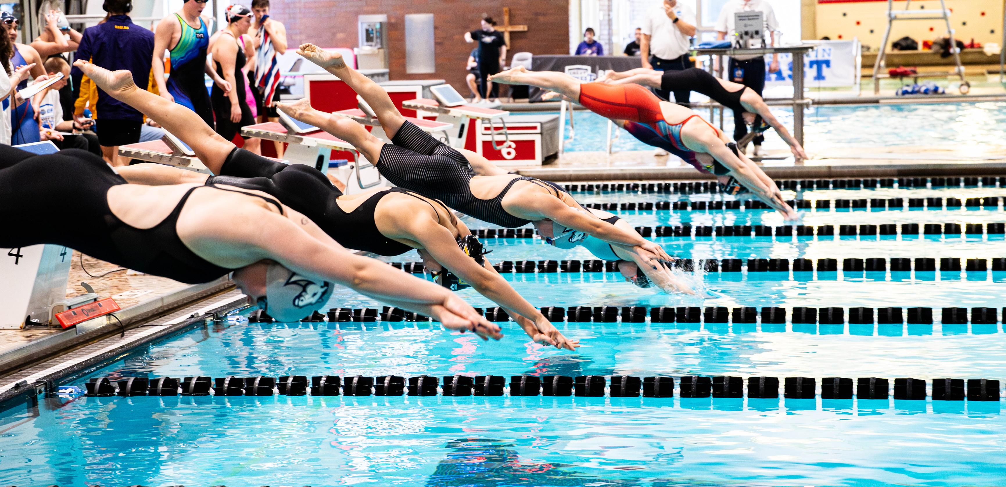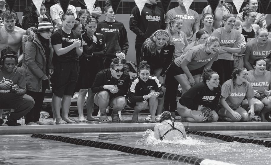 The Hillsdale women’s swim team placed second at the Great Midwest-Mountain East Conference Championship held in Canton, Ohio, Feb. 10-13. This marked the last collegiate meet for senior Rotem Andegeko, who despite a torn ligament in her left knee, achieved seasonal bests in every race.