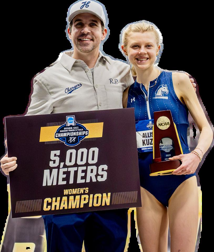 Kuzma won the national title in the 5K with a time of 15:58.57, breaking the