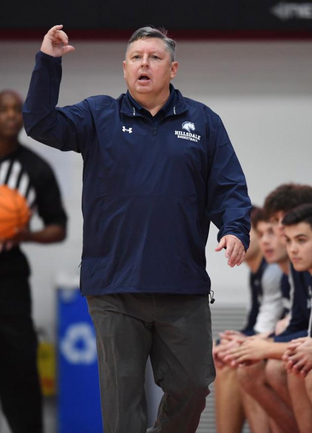 Tharp coaching the men’s basketball team. Courtesy | Hillsdale College