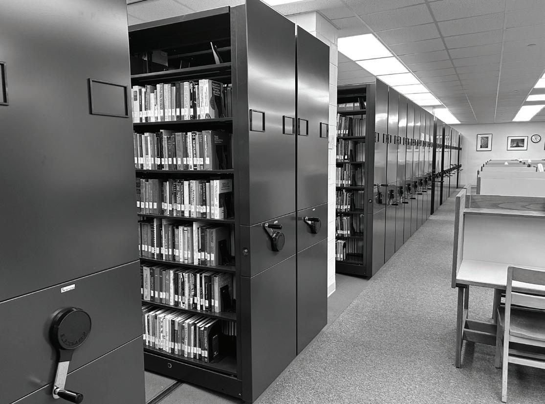 The compact shelves store books on science, bibliography, and library science as well as back issues of periodicals and archival materials, according to Public Services Librarian George Allen.