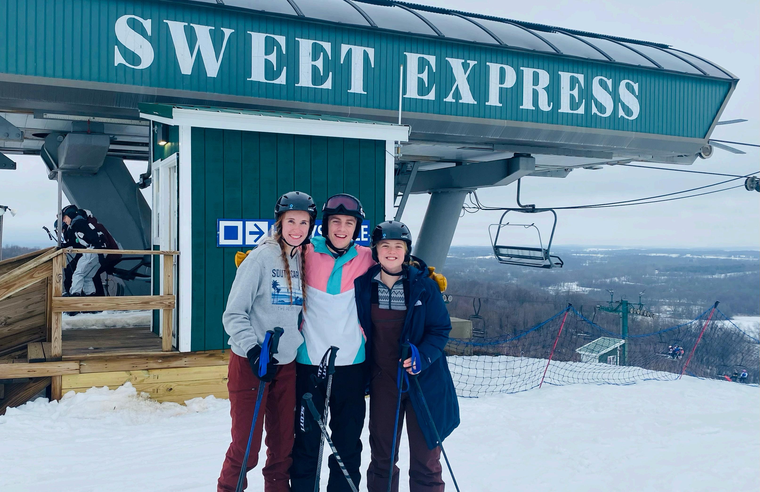 Students traveled to the ski hill last Saturday with the Student Activities Board. The $40 participation fee covered a lift ticket and rental equipment for the day. Sophomores Olyvia Oeverman, Jacob Beckwith, and Lucy Treene (left to right) stand next to the lift. Sydney Green | Colle G ian