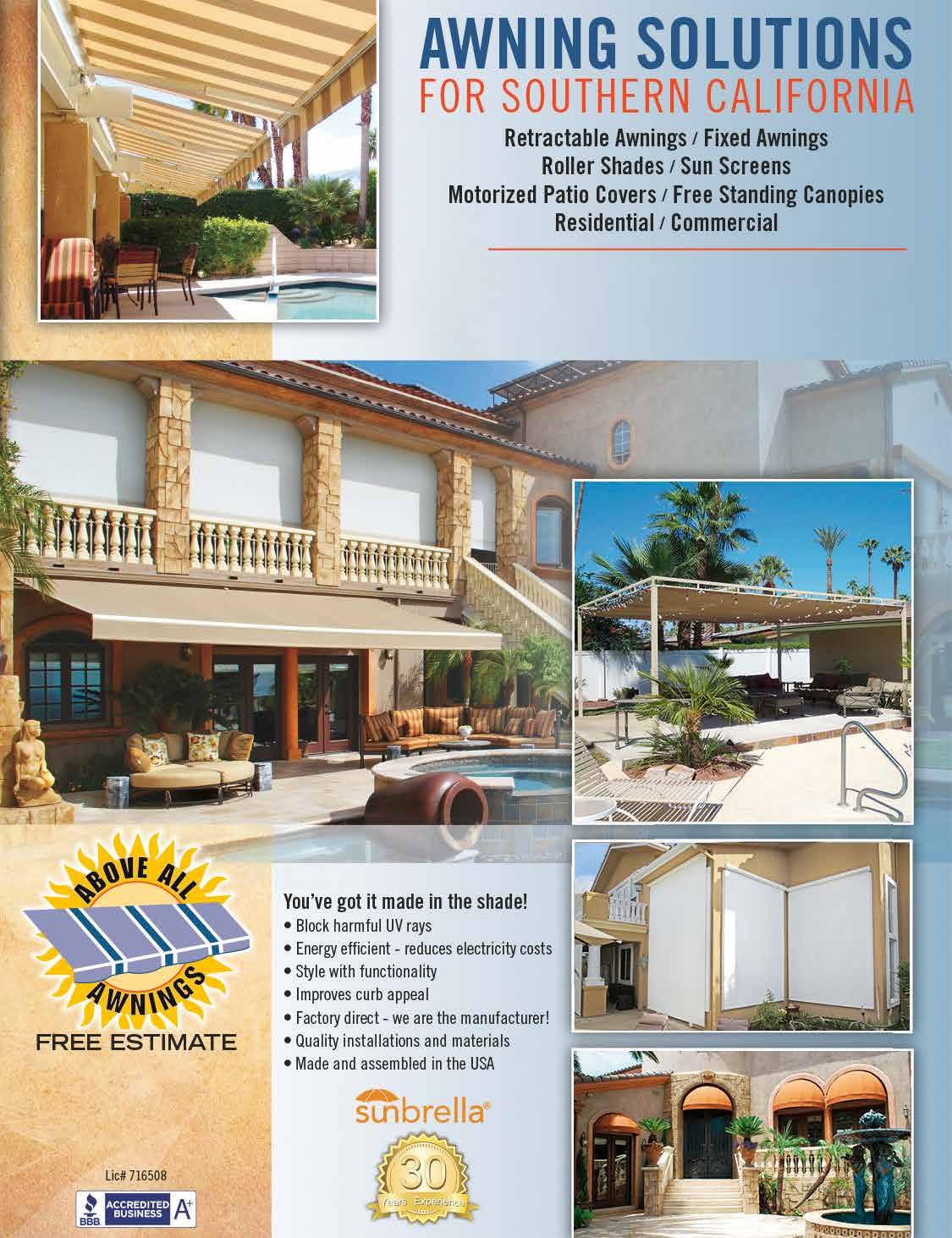 www.thmsocal.com Share with friends PRSRT STD US POSTAGE PAID LONG BEACH, CA Permit No. 2350 ALL AMERICAN AWNINGS OF PALM DESERT Drop Roll Shades—Electric/Manual Retractable Awnings—Electric/Manual Slide On Wire Shades Solid and Open Lattice Aluminum Patio 30 % OFF Code: THMCV23 Lic: #1012313 www.allamericanawningsofpalmdesert.com • allamericanawningspd@gmail.com Call Us Today For A Free Estimate 760-334-3482
