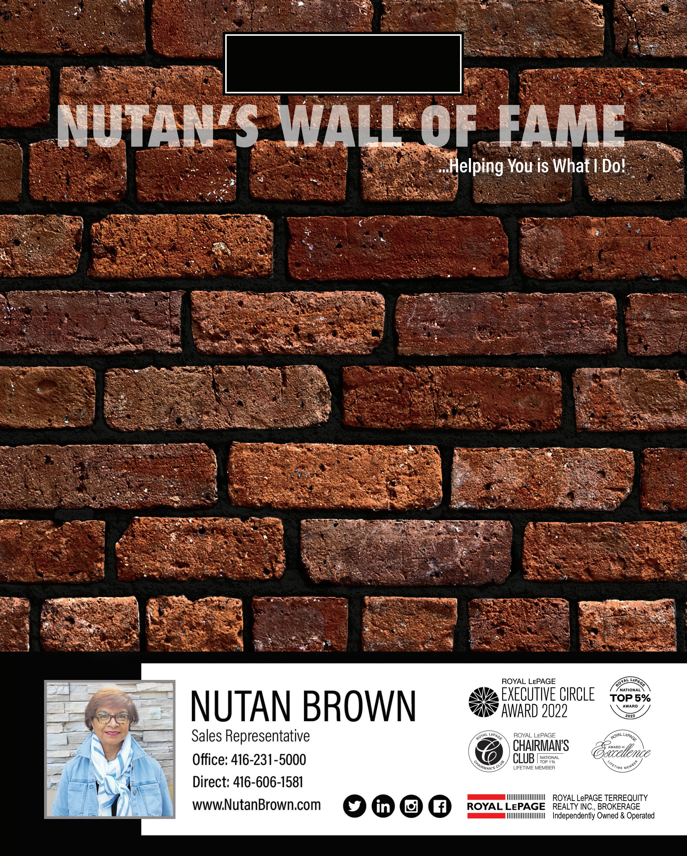 NUTAN BROWN ENERGY, COMMITMENT, RESULTS. Sold! Sold! 60 Lothian Avenue, Toronto 110 Baby Point Road, Toronto 775 King Street West, Toronto 935 Royal York Road, Toronto* 100 Quebec Avenue, Toronto* Sold! Sold! Sold! Sold! *Represented Buyer*Represented Buyer For more than 7 years, Nutan has been a generous supporter of our team and a great and enthusiastic voice of encouragement for our players, some of whom she has supported since they were 9 years old! Her total professionalism is matched only by her deep roots in, and real commitment to, building our community. Thank you Nutan. You are the best! ~ Chris Wayland, Head Coach, Warren Park Eagles Major Atom Select
