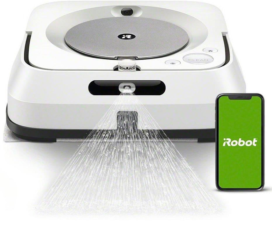 The Braava jet® m6 robot mops like you would. You can tell it where and when to clean, and Precision Jet Spray helps tackle sticky messes and kitchen grease. Ideal for multiple rooms and larg er spaces. Navigates around ob jects and under furniture. Cleans finished hard floors including hardwood, tile and stone. irobot.com