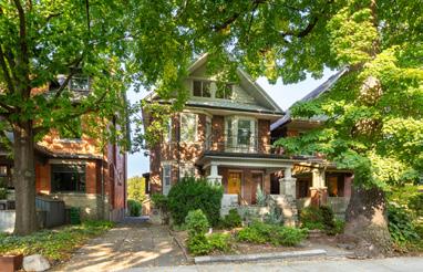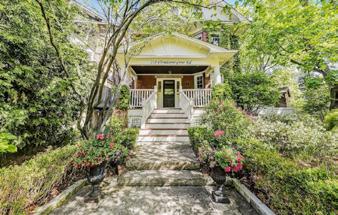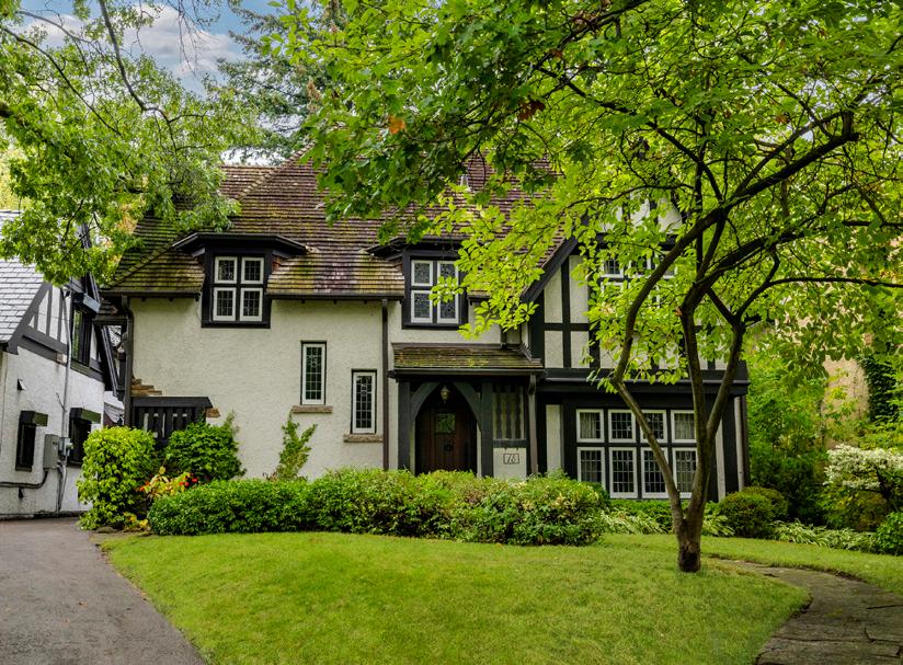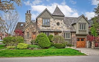 Charming R. Home Smith original in prized location! Circa 1930, the Olde English architecture remains an enduring classic. In style then, and still in style today! The vestibule opens to a baywindowed living room with a log-burning hearth. Formal separate dining room. An updated kitchen and cozy family room open to the private rear garden. A convenient main-floor powder room completes the first level. Upstairs offers an oversized bay-windowed primary suite & two additional bedrooms & a four-piece bath. The lower level welcomes your own initiative.