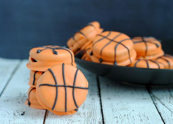 5. When you are ready to start piping your lines, remember that a basketball has 4 lines, first divide the Oreo into 3 vertical parts:
