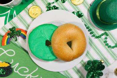 4. Leprechaun Bagel (Bagel with green colored cream cheese)